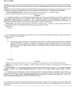 Ciudad de México, 1 de noviembre (SinEmbargo).- La Presidenta Claudia Sheinbaum publicó en el Diario Oficial de la Federación (DOF) el decreto de la reforma que establece la improcedencia de amparos y controversias contra cualquier modificación a la Constitución federal.