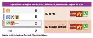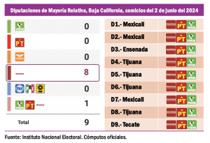 La presencia de Morena y sus aliados es abrumadora en Baja California y Baja California Sur, en donde hay 11 distritos electorales federales y todos fueron ganados por la coalición Sigamos Haciendo Historia en junio pasado.