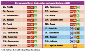 Aunque la Ley General de Instituciones y Procedimientos Electorales le prohíbe a los partidos políticos intervenir en los comicios del Poder Judicial, en esta Primera Circunscripción Electoral Morena, PT y PVEM tienen una clara supremacía e influencia entre el electorado en Baja California, Baja California Sur, Durango, Jalisco, Nayarit, Sonora y Sinaloa, si tomamos como referencia sus triunfos en los comicios para diputados federales por el principio de Mayoría Relativa, del pasado domingo 2 de junio del 2024.