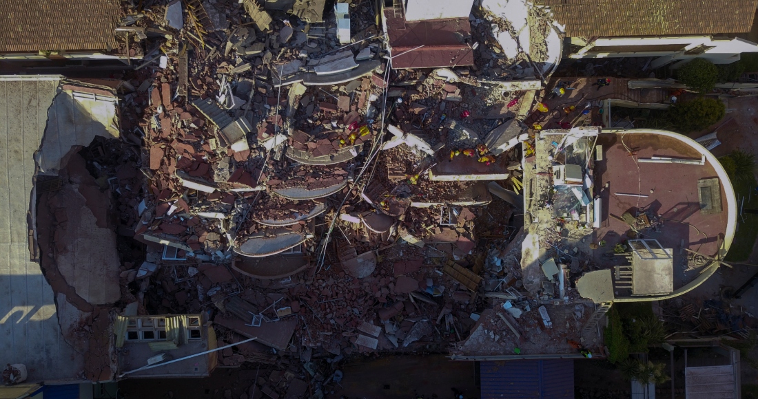 Lo único que queda ahora del hotel es la fachada roja y blanca, de construcción esférica, mientras que el resto de la estructura de 10 pisos está completamente destruida. Cientos de técnicos, socorristas y miembros de distintas fuerzas de seguridad trabajan en las tareas de rescate, para las cuales emplean perros rastreadores y una gran grúa.