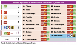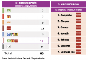 En toda la Tercera Circunscripción Electoral sólo hubo dos estados en los cuales se notó la presencia de la oposición en los comicios del domingo 2 de junio del 2024: Veracruz, donde la coalición Fuerza y Corazón pór México ganó uno de 19 distritos electorales federales, el que tiene por cabecera Boca del Río; mientras que en Yucatán, que de manos del PAN la gubernatura pasó a Morena, de seis distritos electorales federales la coalición opositora sólo ganó uno, con cabecera en Mérida, la capital estatal. En estas dos entidades hay 27 Distritos Judiciales, que se renovarán por mitad en junio del 2025.
