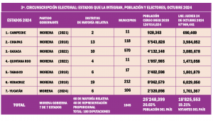 Morena y sus aliados tienen una presencia dominante en las siete entidades del Sur-Sureste de la República, que forman parte de la Tercera Circunscripción Electoral, por ende, se espera que en la elección de Ministros, Magistrados y Jueces, en los comicios del Poder Judicial del año próximo, sus seguidores inclinen la balanza hacia perfiles que simpaticen con el proyecto de la Cuarta Transformación.