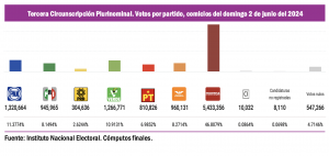 Una vez analizado el panorama de estas siete entidades del Sur-Sureste de la República, que forman parte de la Tercera Circunscripción Electoral, queda claro que es inevitable que en la elección de Ministros, Magistrados y Jueces, en los comicios del Poder Judicial del año próximo, Morena y sus aliados serán una presencia dominante, pues sus seguidores, simpatizantes del proyecto de la Cuarta Transformación, definirán a los nuevos integrantes del Poder Judicial de la Federación que sean electos en esta región, en la cual la oposición es virtualmente inexistente.