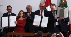 México contempla una revisión al Tratado entre México, Estados Unidos y Canadá. El Secretario de Economía, Marcelo Ebrard dijo a finales de septiembre que las circunstancias actuales hacían que el tratado trilateral "ya le quedan chico" acorde a las necesidades.