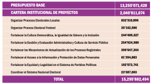 El lunes 4 de noviembre del 2024 el Consejo General del Instituto Nacional Electoral aprobó su Anteproyecto de Presupuesto para el Ejercicio Fiscal del año 2025, por un monto total de $15,295,882,494.00 (Quince mil doscientos noventa y cinco millones ochocientos ochenta y dos mil cuatrocientos noventa y cuatro pesos 00/100 M.N.).