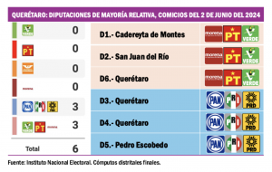 Otro caso que muestra el derrumbe paulatino del PAN es Chihuahua, donde gobierna la albiazul María Eugenia Campos Galván, entidad en la cual Acción Nacional perdió cuatro de nueve distritos electorales federales, más de la mitad. En Querétaro, otra reserva electoral del PAN, gobernado por el albiazul Maurio Kuri González, también se observan grietas.