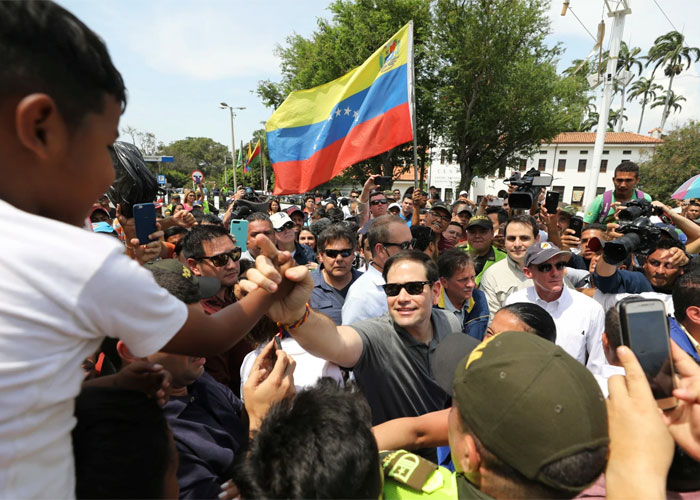 Pocas semanas después que Trump asumiera el cargo en enero de 2017, Rubio llevó a la esposa del destacado disidente venezolano Leopoldo López a la Casa Blanca. La visita a la Oficina Oval, marcada por una foto de un Trump sonriente y de Rubio a los costados de la esposa del activista entonces encarcelado, puso inmediatamente a Venezuela en lo alto de la agenda de política exterior de Estados Unidos, en una ruptura con los esfuerzos de gobiernos estadounidenses anteriores por mantener su distancia de los problemas de la nación.