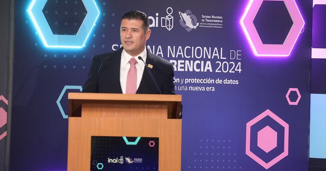 Comisionado presidente del INAI, Adrián Alcalá, en una comisión en Brasil en 2024. Foto: Facebook.