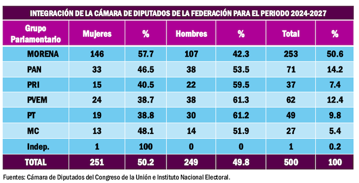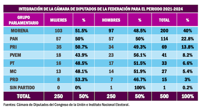 Finalmente, fue hasta los comicios del 6 de junio del 2021 que las mujeres lograron la paridad en la Cámara de Diputados. Situación que se reiteró en los recientes comicios del domingo 2 de junio del 2024.