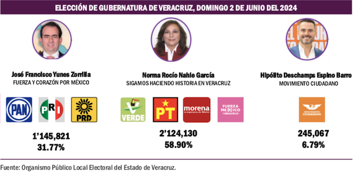 El dominio de Morena y sus aliados se ha acentuado en Veracruz en los más recientes seis años. En los comicios del 2018 el morenista Cuitláhuac García ganó con una diferencia de 5 puntos porcentuales, mientras que en junio pasado la ventaja de Norma Rocío Nahle fue superior a los 27 puntos.