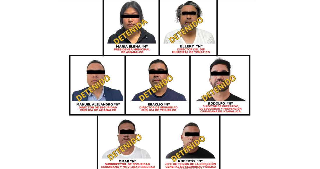Entre los detenidos se encuentran Rodolfo "N", director operativo de Seguridad y Prevención Ciudadana de Ixtapaluca, y Roberto "N", jefe de región de la misma dirección, acusados de secuestro exprés con fines de extorsión.