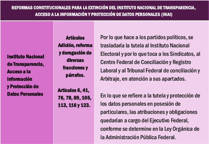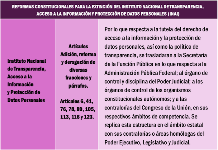 El caso más polémico de las reformas para la extinción de organismos constitucionalmente autónomos es el del Instituto Nacional de Transparencia, Acceso a la Información y Protección de Datos Personales. ¿Quién o quiénes asumirán sus funciones y facultades?