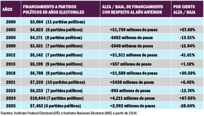 Es en esa misma reforma del 1996 cuando por primera ocasión se describe en la Constitución General de la República una fórmula para definir el financiamiento a los partidos políticos.