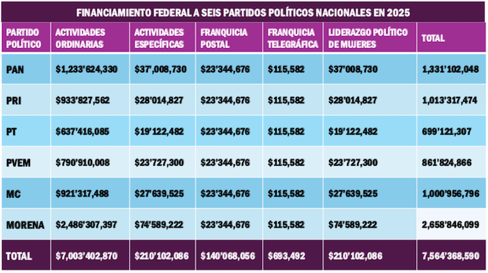 El dispendio que la sociedad percibe en el financiamiento a partidos políticos, que en su mayoría son repudiados por la gente, es un paso obligado en lo que llaman la construcción del Segundo Piso del Gobierno de la Cuarta Transformación que encabeza Claudia Sheinbaum Pardo, pues no puede haber Gobierno rico con pueblo pobre.