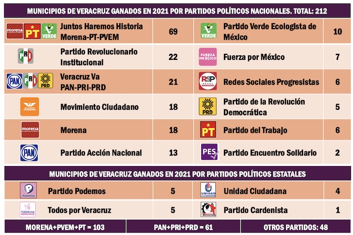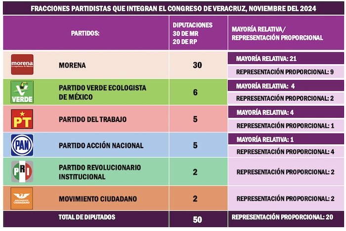 Morena y sus aliados dominan ampliamente el Congreso de Veracruz, con 41 de los 50 legisladores que lo integran. Además, en los comicios del pasado junio la candidata presidencial de Morena, PT y PVEM ganó con facilidad en el estado de Veracruz, donde la coalición Sigamos Haciendo Historia también obtuvo las dos senadurías por el principio de Mayoría Relativa.