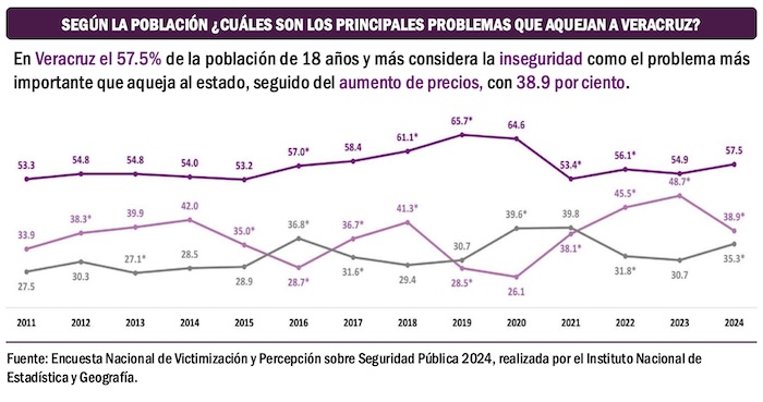 El primer reto políitico que enfrentará la nueva mandataria de Veracruz será ganar en los comicios del primero de junio del 2025 la mayoría de los 212 presidencias municipales que estarán en juego en su entidad. Por otra vía, la más reciente Encuesta Nacional de Victimización y Percepción sobre Seguridad Pública 2024, realizada por el Instituto Nacional de Estadística y Geografía, señala que los dos principales problemas que afectan a Veracruz, según opinión de sus pobladores, son la inseguridad y el aumento de precios.