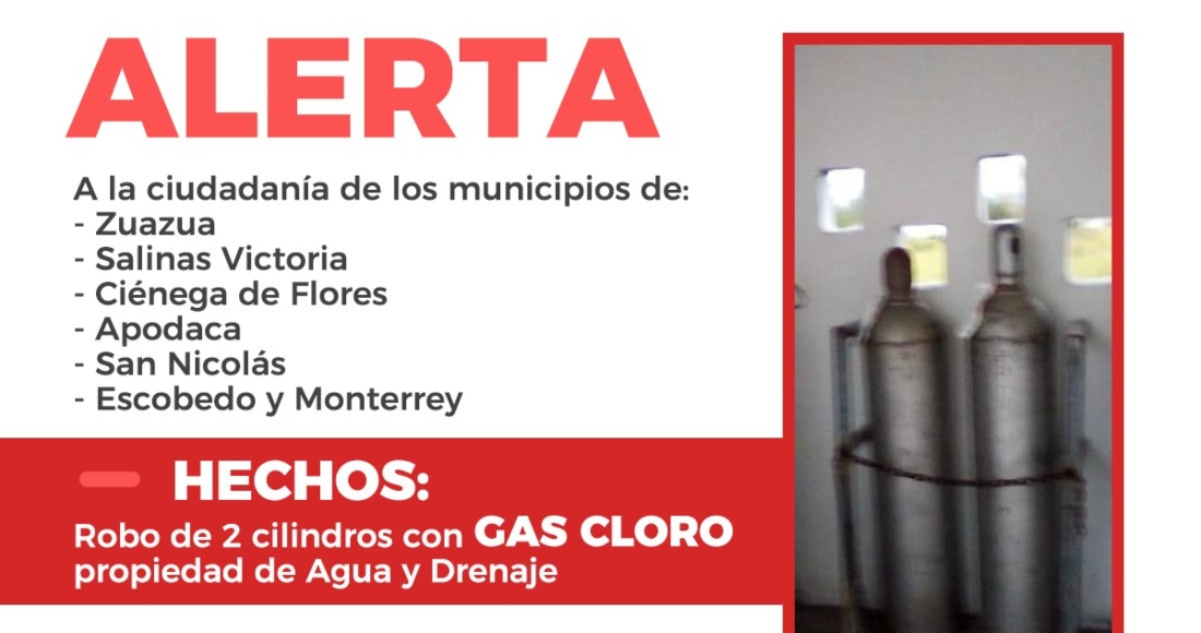 ⚠️#Boletín de hallazgo por robo de cilindro con gas cloro con número ONU: 1017 Cloro.