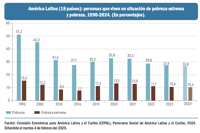 El informe denominado “Panorama Social de América Latina y el Caribe 2024” de la Comisión Económica para América Latina y el Caribe (CEPAL), también habla sobre la pobreza y la desigualdad en nuestra región. Ese asunto lo veremos en el Puntos y Comas de mañana.