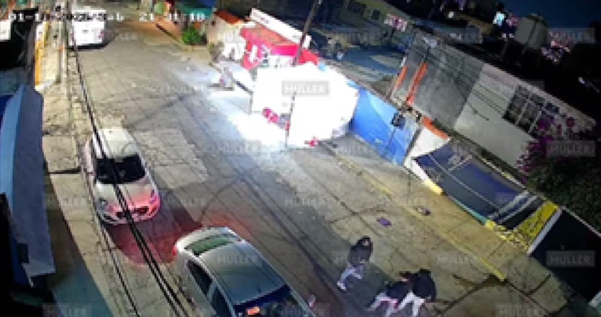 Tras obtener el botín, el asaltante desciende del vehículo y huye del lugar, perdiéndose entre las calles aledañas.