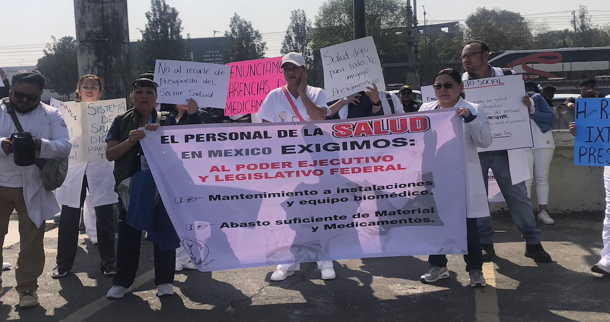 Las y los trabajadores de la salud exigen el pago inmediato de sueldos atrasados y rechazan la aplicación de descuentos indebidos, cambios arbitrarios de adscripción, la imposición de excesivas jornadas de trabajo, así como la violación de sus derechos humanos y laborales. Además, solicitan insumos para trabajar y abasto de medicamentos.