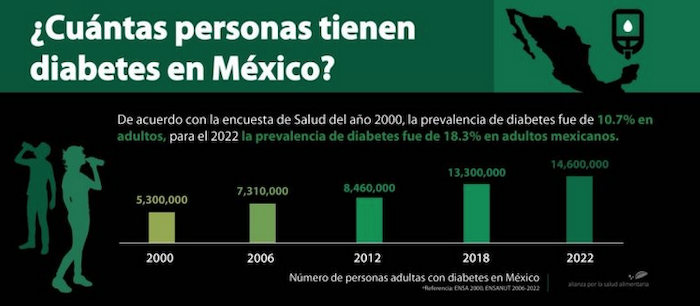 Además de la publicación reciente en Nature Medicine, los datos oficiales en México muestran que los casos de diabetes casi se han triplicado en las últimas dos décadas. En el año 2000, 5.3 millones de personas vivían con diabetes, mientras que para el año 2022 se elevó a 14.6 millones de personas, de acuerdo con datos de la Encuesta Nacional de Salud del año 2000 y la Encuesta Nacional de Salud y Nutrición del 2022.