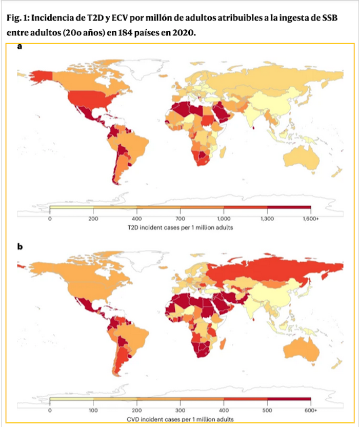 La investigación, de enero de este año, calculó la carga de diabetes y enfermedades cardiovasculares atribuibles a las bebidas azucaradas en 184 países, entre 1990 y 2020 tanto a nivel mundial, regional y nacional al recopilar información de encuestas dietéticas y analizar qué alimentos se están consumiendo.
