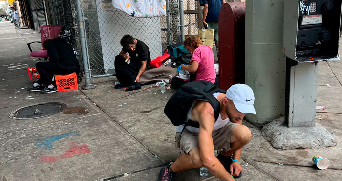 Al bajar en la estación de metro de Allegheny—en el barrio de Kensington, ubicado en la ciudad de Filadelfia—los visitantes se encuentran de inmediato con una realidad desoladora. Las aceras están repletas de basura y jeringas usadas. Cada pocos metros, alguien se “dobla” o se desploma en estado de trance. Los que están despiertos se encuentran tan concentrados en consumir y preparar drogas que ni siquiera reconocen a los transeúntes. También se percibe un silencio desolador; nadie habla ni pide monedas. El aire está cargado de angustia y desesperanza.