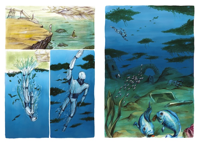 El artista mexicano Abraham Balcázar habló sobre su novela gráfica en la que dibuja un planeta que ha perdido la mayoría de su flora y fauna, y en donde la humanidad ha sido mermada, convive con robots y androides, todos controlados por una inteligencia artificial.