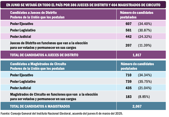 El Poder Ejecutivo federal, a través de la Presidencia de la República, es el que postuló más candidatos para la renovación de 386 cargos de Jueces de Distrito que se elegirán en los comicios del primer domingo de junio del 2025.