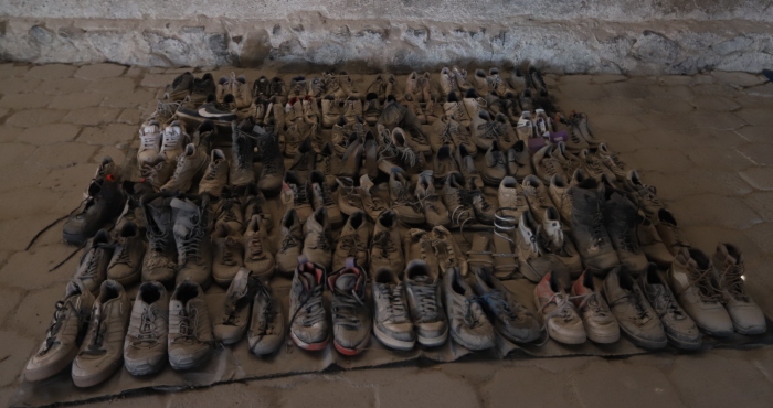 Zapatos encontrados en el Rancho Izaguirre, en Teuchitlán, Jalisco. Foto: Fiscalía del Estado de Jalisco.