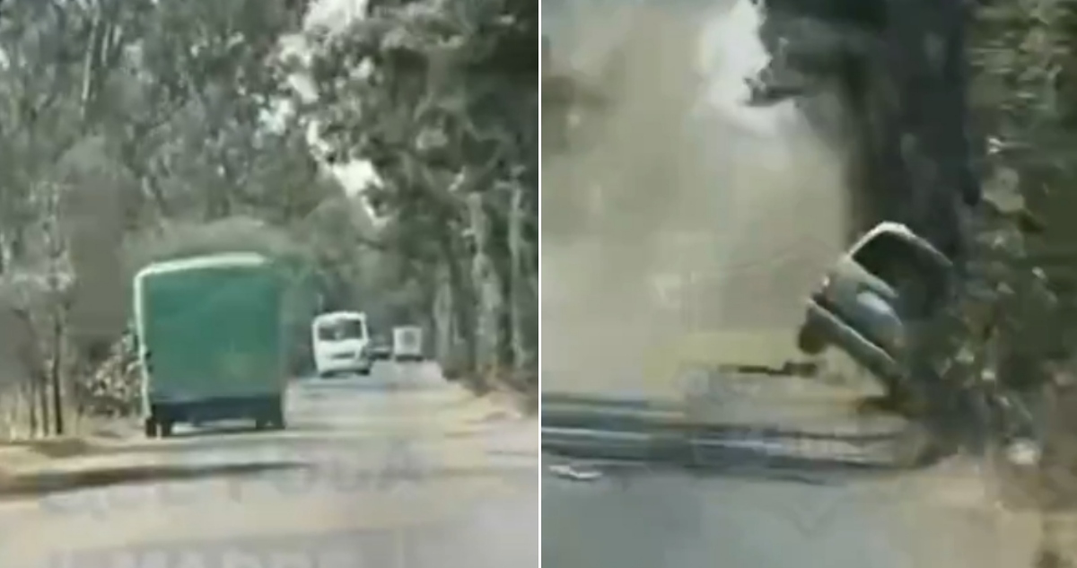 El video muestra cómo la camioneta de la pareja quedó fuera del camino. La mujer sufrió fracturas en el brazo, mientras que el hombre resultó gravemente herido.