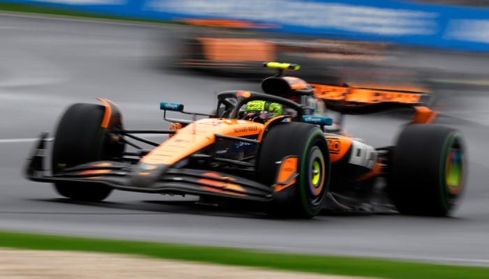 Norris dominó la primera parte de la carrera por delante de su compañero de equipo, el australiano Oscar Piastri, y de Verstappen antrs de que la pista mejorase y permitiese el cambio a neumáticos lisos superado el ecuador. Sin embargo, la lluvia sorprendió a los pilotos justo después de que abandonan el compuesto intermedio y les obligó a entrar de nuevo en boxes para volver a las gomas de lluvia.