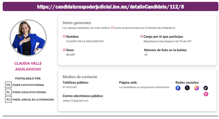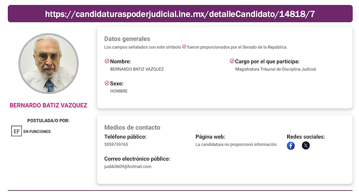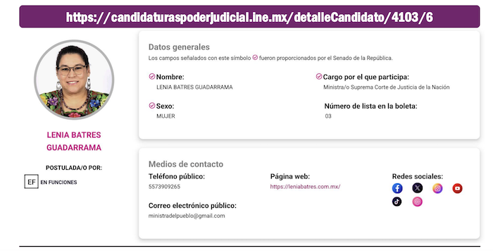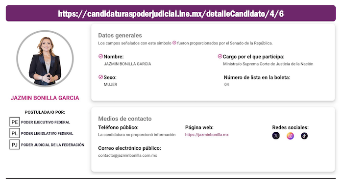 Veamos ejemplos de lo que encontraremos en la página del INE, con información de candidatos a ministros de la Suprema Corte de Justicia de la Nación.