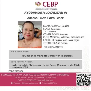La semana pasada también la violencia estremeció la entidad con el hallazgo de los restos de una maestra de preescolar reportada como desaparecida el 29 de marzo. Se trata de la maestra Adriana Leyva Parra López, que –de acuerdo con información de diversos medios– sus extremidades fueron encontradas en una vivienda de la colonia PRD, en Chilpancingo, y más restos fueron localizados horas después en el Cerro del Machochua.
