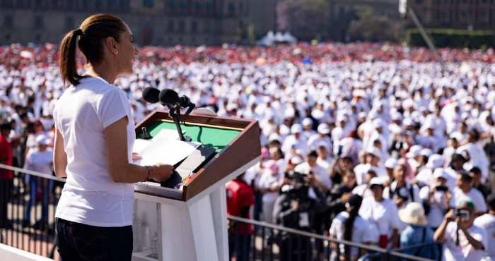 Asimismo, la mandataria federal destacó ante cientos de mexicanos y mexicanas de todas las edades los valores que definen al pueblo mexicano: valentía, solidaridad y justicia.
