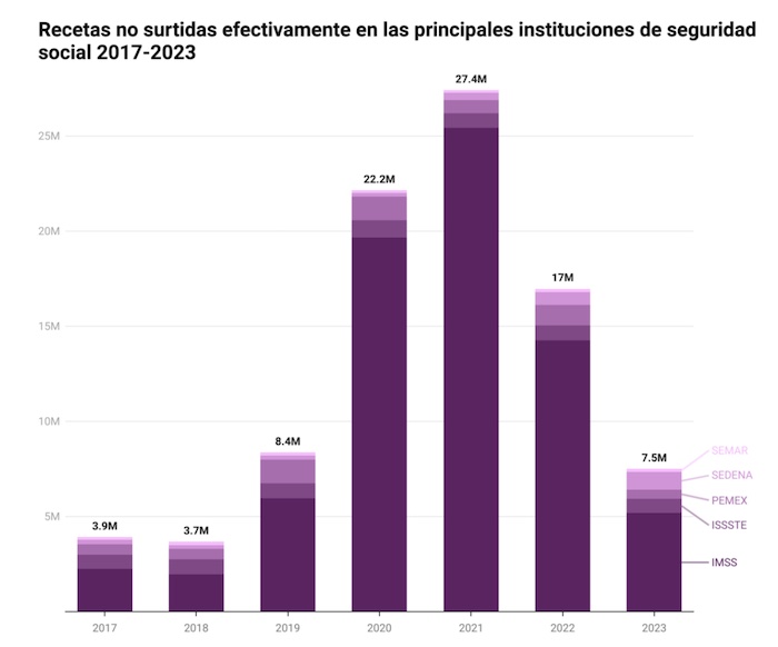 “Sí estamos viendo que particularmente en enfermedades crónicas como las metabólicas, diabetes, hipertensión, muchos de los medicamentos más recurrentes del primer nivel de atención sí ha cambiado claramente el porcentaje de recetas que se entregan”, expuso.