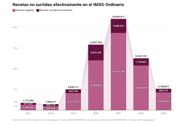 La directora de Cero Desabasto, que recibe reportes ciudadanos de desabasto a nivel nacional, dijo que desde finales de 2024, y sobre todo el primer trimestre de 2025, el desabasto de medicamentos se agudizó, sobre todo en medicinas contra el cáncer, diabetes, psiquiátricos o los utilizados después de trasplantes de órganos.