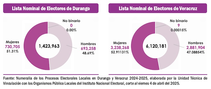 Por su población y su Lista Nominal de Electores, Veracruz es la cuarta entidad del país, en tanto que Durango está en la posición número 25. En la entidad costera viven, según datos del Instituto Nacional de Estadística y Geografía, 8 millones 62 mil 579 personas, mientras que en el estado norteño la población es de 1 millón 832 mil 650 habitantes.