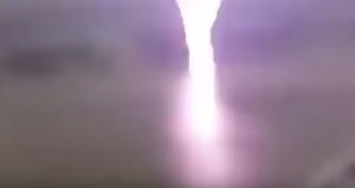 Un destello blanco y chispas aparecen de pronto, lo que provoca que el hombre reaccione y retroceda. La siguiente reacción del hombre es retirarse del lugar junto con su compañero, quien fue testigo del incidente.