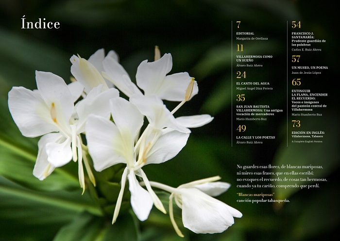 En este número, como ocurre en gran cantidad de publicaciones de Artes de México, las imágenes e ilustraciones, no pueden separarse de la poesía. Son asombrosas las tomas aéreas de la Villahermosa de hoy, como apunta Margarita de Orellana en su texto introductorio, "Para navegar una ciudad de palabras".