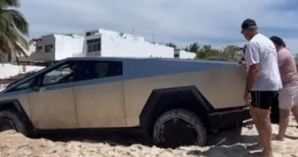 Una camioneta Cybertruck de Tesla quedó atorada en una playa de Yucatán, en un hecho que generó controversia en redes, debido a que está prohibido ingresar con vehículos a las playas del estado.