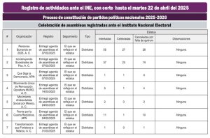 “Construyendo Sociedades de Paz” había notificado al INE, hasta el pasado martes 22 de abril del 2025, la celebración de 23 asambleas distritales, de las 200 que deberá llevar a cabo en el transcurso del 2025.