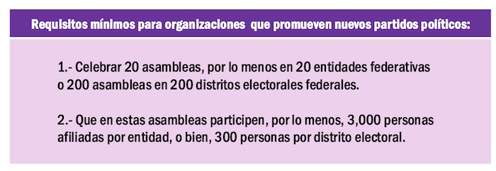 Únicamente dos organizaciones muestran avances en el proceso de realizar asambleas de afiliación de nuevos militantes. La llamada "Marea Rosa" está presente a través de la organización “Personas Sumando en 2025, A. C.”, cuya cabeza visible es el experredista Guadalupe Acosta Naranjo. Esta organización, que aglutina también membretes de derecha, se inscribió para promover el partido Somos México.