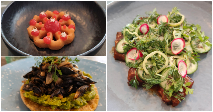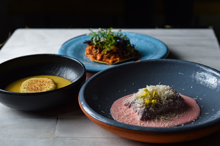 Para cerrar no puede faltar el postre y las opciones son el buñuelo con majar de arroz y jalea de jitomate, una deliciosa sorpresa, y el tamalito de guayaba con higo y crema de queso Cotija, este es un imperdible.