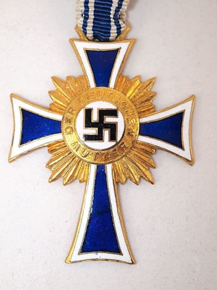 “Solo las mujeres que cumplían los ideales raciales nazis podían optar a una cruz; para recibirla, ambos padres de los niños debían ser de sangre alemana, de acuerdo con las ideas nazis de pureza racial, y las madres debían ser consideradas dignas. Las cruces podían retirarse si las autoridades consideraban que una mujer se había vuelto indigna, por ejemplo, por no haber criado a sus hijos de acuerdo con los ideales nazis. Las primeras cruces se entregaron en 1938 y la última en 1944, momento en el que se habían otorgado aproximadamente 4.7 millones”, explica el Centro y Museo Nacional del Holocausto.