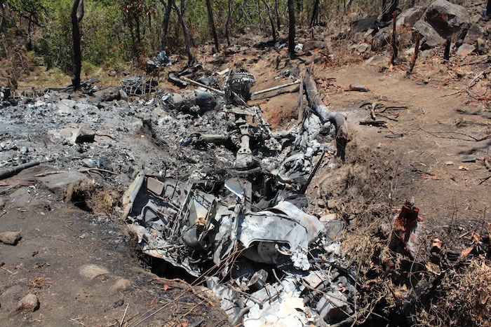 La aeronave se desplomó al ser alcanzada por cohetes lanzados por un RPG soviético. Se sabe que los sicarios también atacaron la aeronave con una Barret y una vez que el helicóptero chocó, fueron cazando a los sobrevivientes. Iván Morales ha relatado que oyendo lo que sucedía salió por la única vía que estaba en llamas, quemando el 70 por ciento de su cuerpo.