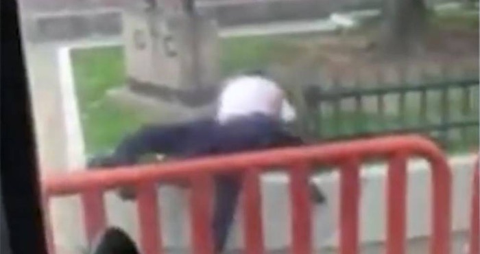 En las imágenes se puede observar a ambos individuos forcejear en la entrada del camión, mientras cómo otros pasajeros y personas que se encontraban cerca intentan detener la pelea.