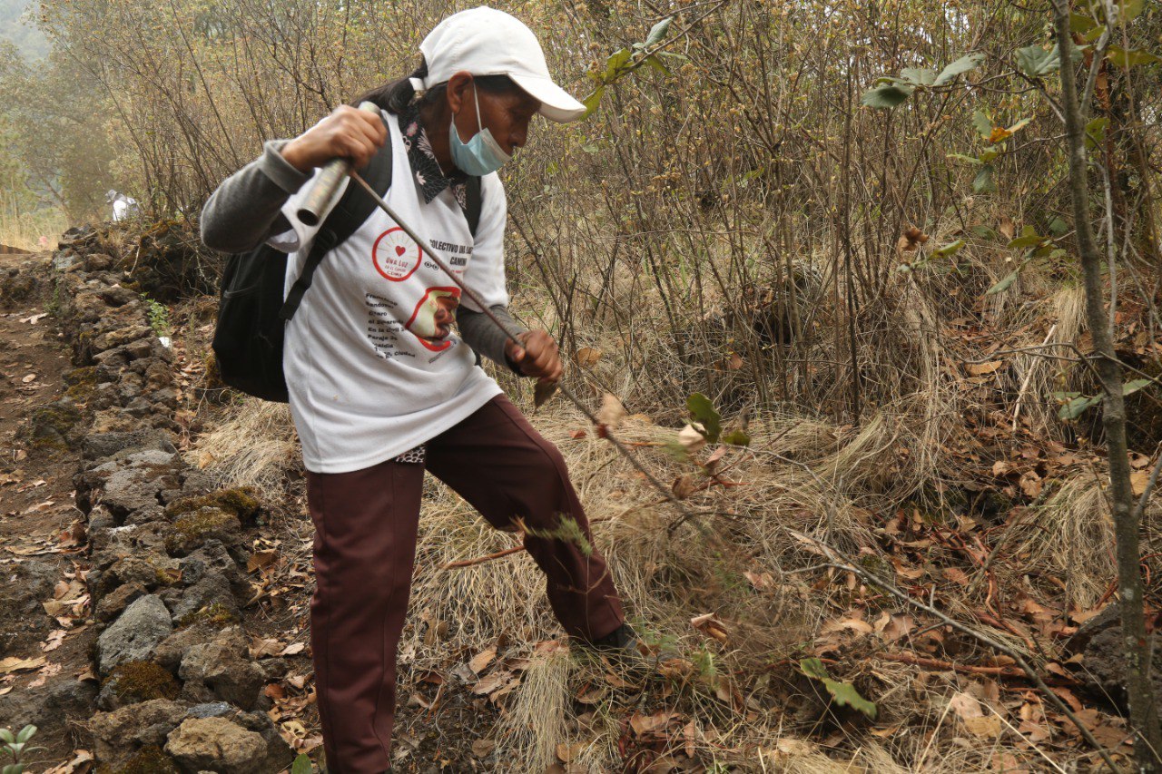 En medio del monte, Doña Inés Enriqueta Lázaro avanza con cierta destreza. Ella tiene 68 años. Su cuerpo es menudo, pequeño; no mide más de 1.60 metros y su complexión es delgada. Sobre su espalda, una mochila negra con al menos 10 kilos de carga, en las que lleva herramientas, agua, prendas, y objetos personales. Esa carga es pequeña a comparación con la que lleva su alma: siete años de incertidumbre por la desaparición de su hijo Francisco Lázaro.
