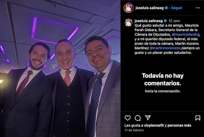También se aprecian en su perfil de Instagram imágenes junto a Carlos Slim, así como al lado de los gobernadores morenistas Julio Menchaca, Alejandro Armenta y Delfina Gómez, al igual que con el Senador Alejandro Murat, antes priista y hoy de Morena, pero también junto a Margarita Zavala Gómez del Campo, esposa de Felipe Calderón, al igual que posando con Manlio Fabio Beltrones, un expriista de larga trayectoria en la política o con Saúl Monreal.
