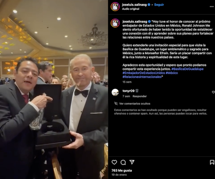 Entre sus imágenes que él mismo ha hecho públicas se aprecia de igual forma cómo da botellas de Tequila Don Ramón al Embajador de México en EU, Esteban Moctezuma así como al nuevo Embajador de EU en México Ronald Johnson, al empresario Francisco Cervantes, del Consejo Coordinador Empresarial, a los dirigentes de Morena, Luisa Alcalde y Andrés Manuel López Beltrán. De igual forma ha compartido videos regalando tequilas a Miguel Ángel Mancera y la exprocuradora Marisela Morales.